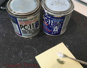 Mix even parts of PC-eleven epoxy filler. For ease of application, work in room temperature of 75 degrees F or warmer. We place the PC-eleven in a modest heater and keep it at 100 degrees F.
